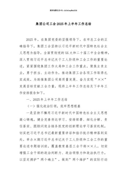 【七哥公文】2025年:【七哥公文】集团公司工会2025年上半年工作总结+更多免费公文+VX:QiGeGongWen2024+更多免费公文+VX:QiGeGongWen2024