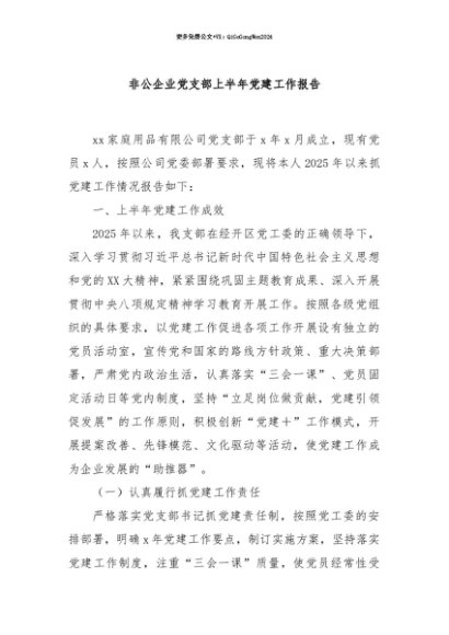 【七哥公文】2025年:【七哥公文】非公企业党支部上半年党建工作报告+更多免费公文+VX:QiGeGongWen2024+更多免费公文+VX:QiGeGongWen2024