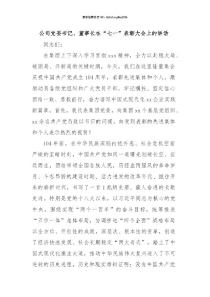 【七哥公文】2025年:【七哥公文】公司党委书记、董事长在“七一”表彰大会上的讲话+更多免费公文+VX:QiGeGongWen2024+更多免费公文+VX:QiGeGongWen2024