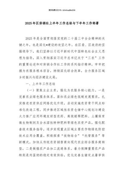 【七哥公文】2025年:【七哥公文】2025年区供销社上半年工作总结与下半年工作部署+更多免费公文+VX:QiGeGongWen2024+更多免费公文+VX:QiGeGongWen2024