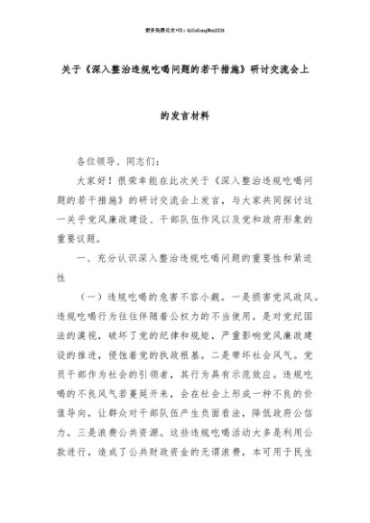 【七哥公文】2025年:【七哥公文】关于《深入整治违规吃喝问题的若干措施》研讨交流会上的发言材料+更多免费公文+VX:QiGeGongWen2024+更多免费公文+VX:QiGeGongWen2024
