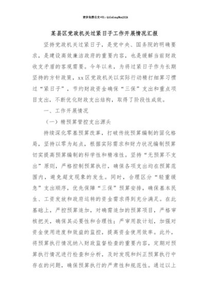 【七哥公文】2025年:【七哥公文】某县区党政机关过紧日子工作开展情况汇报+更多免费公文+VX:QiGeGongWen2024+更多免费公文+VX:QiGeGongWen2024
