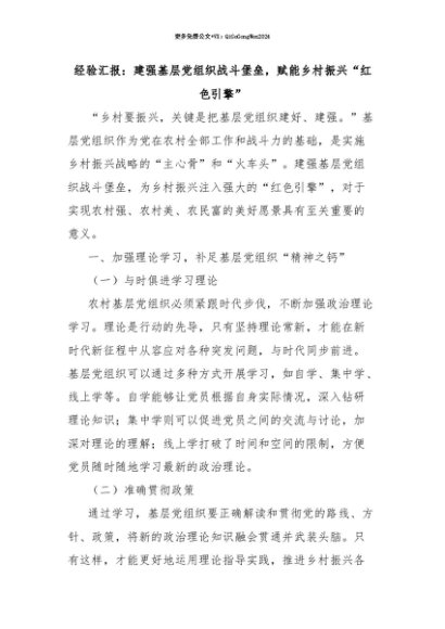 【七哥公文】2025年:【七哥公文】经验汇报:建强基层党组织战斗堡垒,赋能乡村振兴“红色引擎”+更多免费公文+VX:QiGeGongWen2024+更多免费公文+VX:QiGeGongWen2024