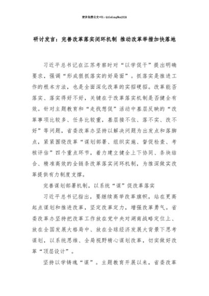 【七哥公文】2025年:【七哥公文】研讨发言:完善改革落实闭环机制 推动改革举措加快落地+更多免费公文+VX:QiGeGongWen2024+更多免费公文+VX:QiGeGongWen2024