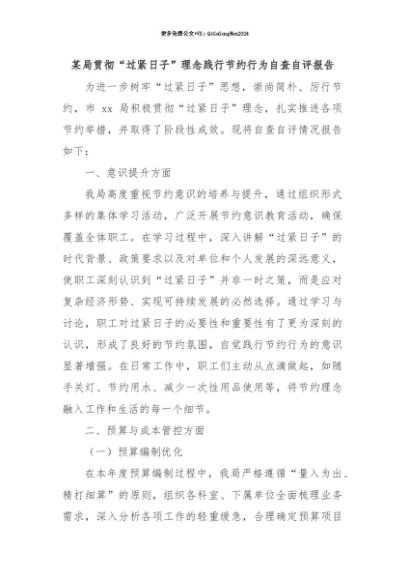 【七哥公文】2025年:【七哥公文】某局贯彻“过紧日子”理念践行节约行为自查自评报告+更多免费公文+VX:QiGeGongWen2024+更多免费公文+VX:QiGeGongWen2024