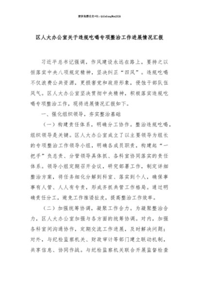 【七哥公文】2025年:【七哥公文】区人大办公室关于违规吃喝专项整治工作进展情况汇报+更多免费公文+VX:QiGeGongWen2024+更多免费公文+VX:QiGeGongWen2024