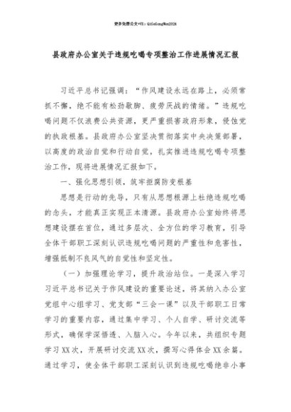 【七哥公文】2025年:【七哥公文】县政府办公室关于违规吃喝专项整治工作进展情况汇报+更多免费公文+VX:QiGeGongWen2024+更多免费公文+VX:QiGeGongWen2024