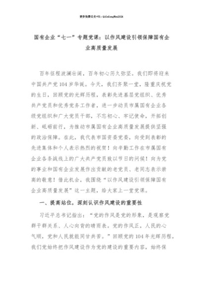 【七哥公文】2025年:【七哥公文】国有企业“七一”专题党课:以作风建设引领保障国有企业高质量发展+更多免费公文+VX:QiGeGongWen2024+更多免费公文+VX:QiGeGongWen2024