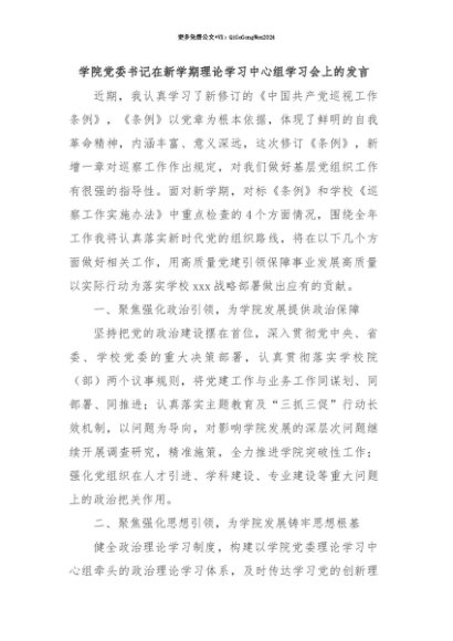 【七哥公文】2025年:【七哥公文】学院党委书记在新学期理论学习中心组学习会上的发言+更多免费公文+VX:QiGeGongWen2024+更多免费公文+VX:QiGeGongWen2024