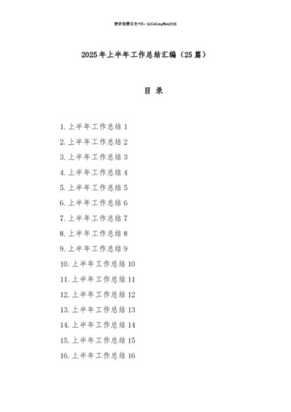 【七哥公文】2025年:【七哥公文】(25篇)2025年上半年工作总结汇编+更多免费公文+VX:QiGeGongWen2024+更多免费公文+VX:QiGeGongWen2024