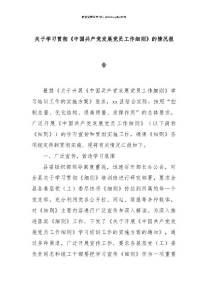 【七哥公文】2025年:【七哥公文】关于学习贯彻《中国共产党发展党员工作细则》的情况报告+更多免费公文+VX:QiGeGongWen2024+更多免费公文+VX:QiGeGongWen2024