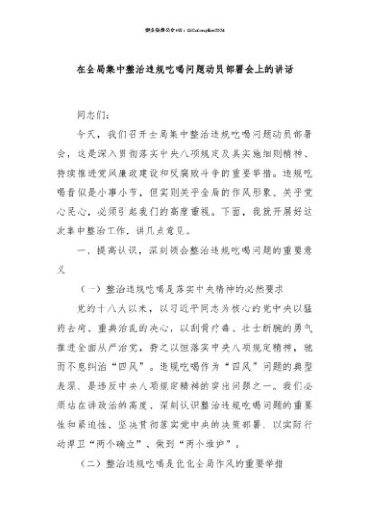 【七哥公文】2025年:【七哥公文】在全局集中整治违规吃喝问题动员部署会上的讲话+更多免费公文+VX:QiGeGongWen2024+更多免费公文+VX:QiGeGongWen2024