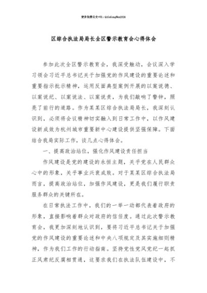 【七哥公文】2025年:【七哥公文】区综合执法局局长全区警示教育会心得体会+更多免费公文+VX:QiGeGongWen2024+更多免费公文+VX:QiGeGongWen2024
