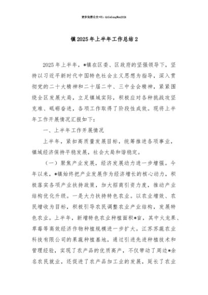 【七哥公文】2025年:【七哥公文】镇2025年上半年工作总结2+更多免费公文+VX:QiGeGongWen2024+更多免费公文+VX:QiGeGongWen2024