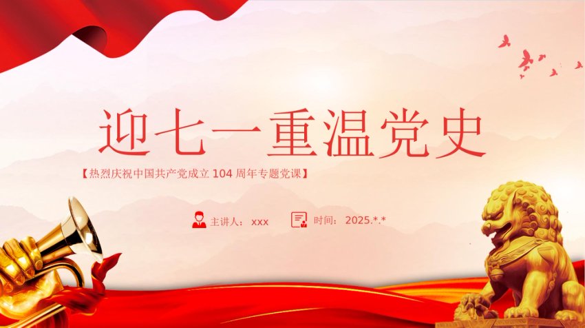 【七哥公文】2025年:【七哥公文】七一党课PPT:红色精美迎七一重温党 史庆祝中国共 产党建党104周年专题党课+更多免费公文+VX:QiGeGongWen2024+更多免费公文+VX:QiGeGongWen2024