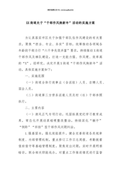 【七哥公文】2025年:【七哥公文】XX街道关于“干部作风焕新年”活动的实施方案+更多免费公文+VX:QiGeGongWen2024+更多免费公文+VX:QiGeGongWen2024