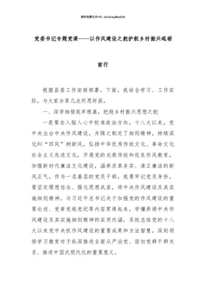 【七哥公文】2025年:【七哥公文】党委书记专题党课——以作风建设之舵护航乡村振兴砥砺前行+更多免费公文+VX:QiGeGongWen2024+更多免费公文+VX:QiGeGongWen2024