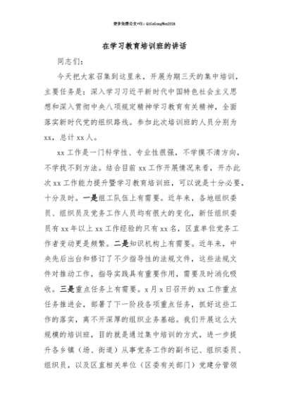 【七哥公文】2025年:【七哥公文】在学习教育培训班的讲话+更多免费公文+VX:QiGeGongWen2024+更多免费公文+VX:QiGeGongWen2024