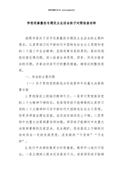 【七哥公文】2025年:【七哥公文】学校巡察整改专题民主生活会班子对照检查材料+更多免费公文+VX:QiGeGongWen2024+更多免费公文+VX:QiGeGongWen2024