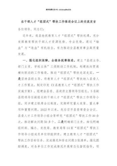 【七哥公文】2025年:【七哥公文】在干部人才“组团式”帮扶工作推进会议上的交流发言+更多免费公文+VX:QiGeGongWen2024+更多免费公文+VX:QiGeGongWen2024