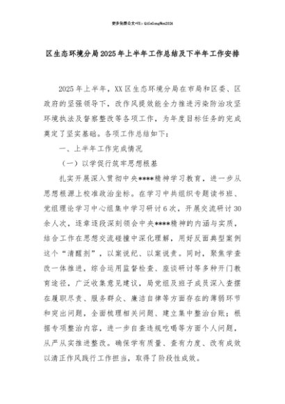 【七哥公文】2025年:【七哥公文】区生态环境分局2025年上半年工作总结及下半年工作安排+更多免费公文+VX:QiGeGongWen2024+更多免费公文+VX:QiGeGongWen2024