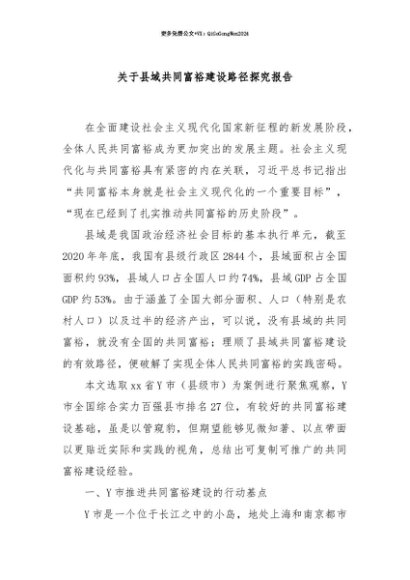 【七哥公文】2025年:【七哥公文】关于县域共同富裕建设路径探究报告+更多免费公文+VX:QiGeGongWen2024+更多免费公文+VX:QiGeGongWen2024