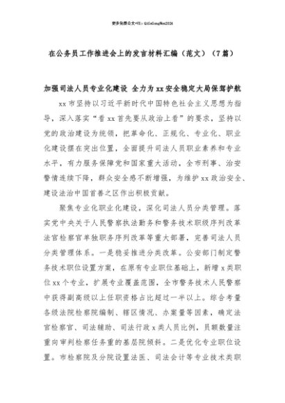 【七哥公文】2025年:【七哥公文】(7篇)在公务员工作推进会上的发言材料汇编(范文)+更多免费公文+VX:QiGeGongWen2024+更多免费公文+VX:QiGeGongWen2024