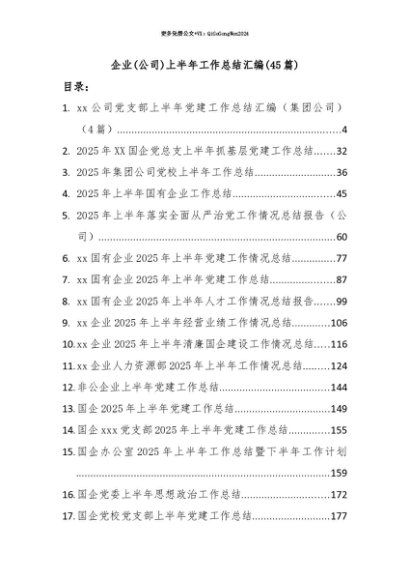 【七哥公文】2025年:【七哥公文】(45篇)企业(国企公司)上半年工作总结汇编+更多免费公文+VX:QiGeGongWen2024+更多免费公文+VX:QiGeGongWen2024