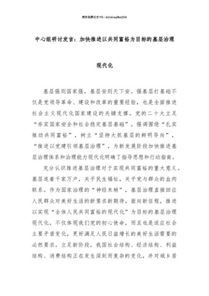 【七哥公文】2025年:【七哥公文】中心组研讨发言:加快推进以共同富裕为目标的基层治理现代化+更多免费公文+VX:QiGeGongWen2024+更多免费公文+VX:QiGeGongWen2024