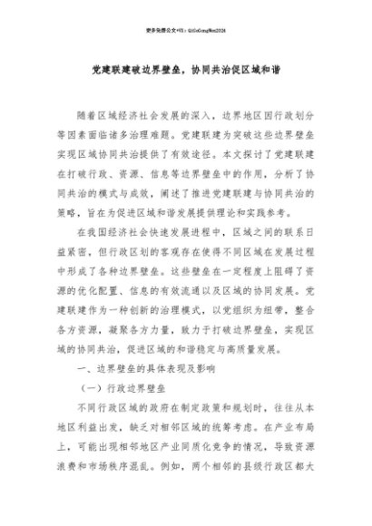 【七哥公文】2025年:【七哥公文】党建联建破边界壁垒,协同共治促区域和谐+更多免费公文+VX:QiGeGongWen2024+更多免费公文+VX:QiGeGongWen2024
