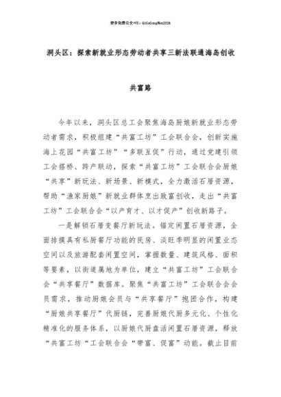 【七哥公文】2025年:【七哥公文】洞头区:探索新就业形态劳动者共享三新法联通海岛创收共富路+更多免费公文+VX:QiGeGongWen2024+更多免费公文+VX:QiGeGongWen2024