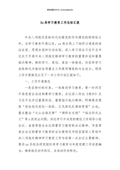 【七哥公文】2025年:【七哥公文】Xx局学习教育工作总结汇报+更多免费公文+VX:QiGeGongWen2024+更多免费公文+VX:QiGeGongWen2024