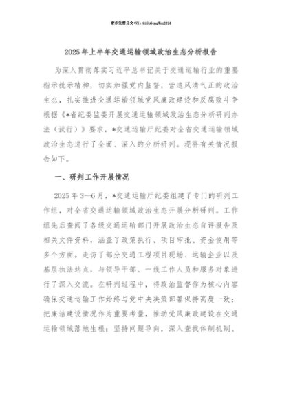 【七哥公文】2025年:【七哥公文】2025年上半年交通运输领域政治生态分析报告+更多免费公文+VX:QiGeGongWen2024+更多免费公文+VX:QiGeGongWen2024