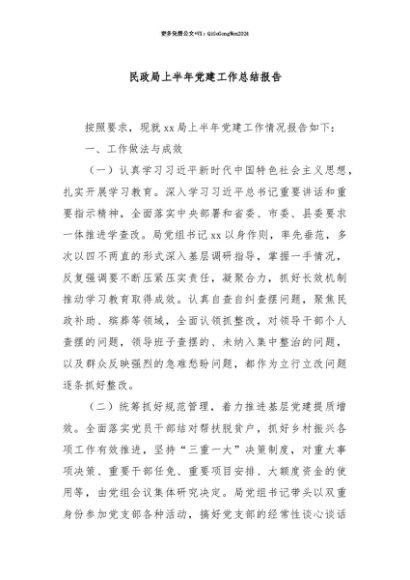 【七哥公文】2025年:【七哥公文】民政局上半年党建工作总结报告+更多免费公文+VX:QiGeGongWen2024+更多免费公文+VX:QiGeGongWen2024