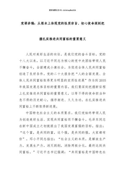 【七哥公文】2025年:【七哥公文】党课讲稿:从根本上体现党的性质宗旨、初心使命深刻把握扎实推进共同富裕的重要意义+更多免费公文+VX:QiGeGongWen2024+更多免费公文+VX:QiGeGongWen2024