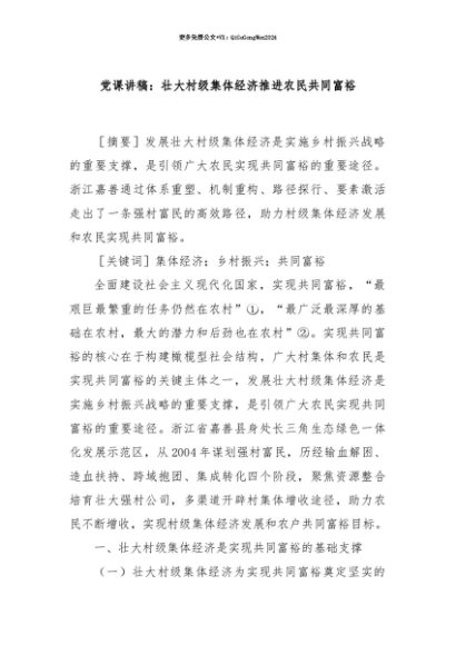 【七哥公文】2025年:【七哥公文】党课讲稿:壮大村级集体经济推进农民共同富裕+更多免费公文+VX:QiGeGongWen2024+更多免费公文+VX:QiGeGongWen2024