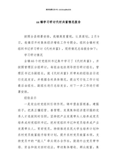 【七哥公文】2025年:【七哥公文】xx镇学习研讨代村共富情况报告+更多免费公文+VX:QiGeGongWen2024+更多免费公文+VX:QiGeGongWen2024