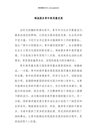 【七哥公文】2025年:【七哥公文】竭诚服务青年高质量发展+更多免费公文+VX:QiGeGongWen2024+更多免费公文+VX:QiGeGongWen2024