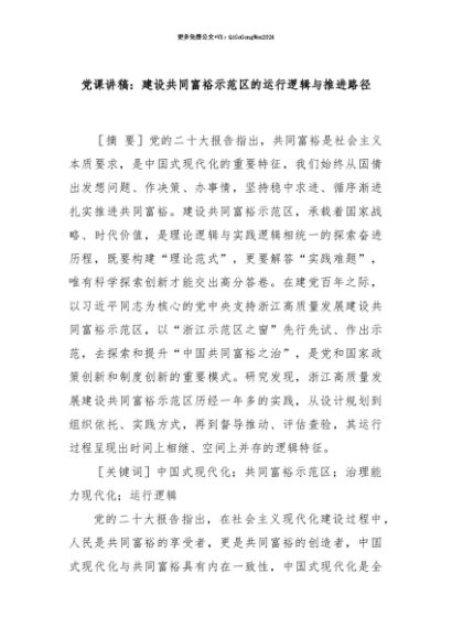 【七哥公文】2025年:【七哥公文】党课讲稿:建设共同富裕示范区的运行逻辑与推进路径+更多免费公文+VX:QiGeGongWen2024+更多免费公文+VX:QiGeGongWen2024
