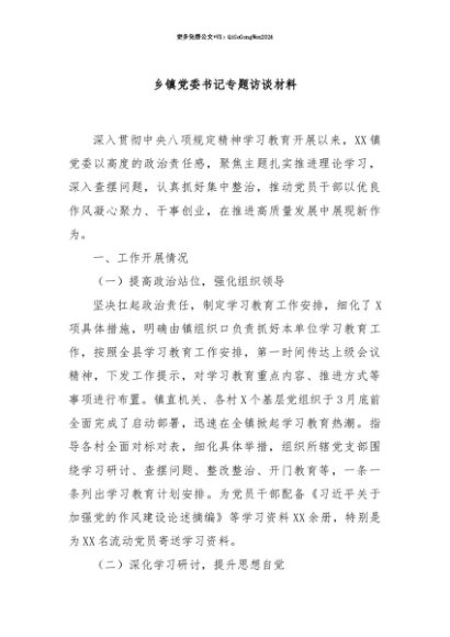 【七哥公文】2025年:【七哥公文】乡镇党委书记专题访谈材料+更多免费公文+VX:QiGeGongWen2024+更多免费公文+VX:QiGeGongWen2024