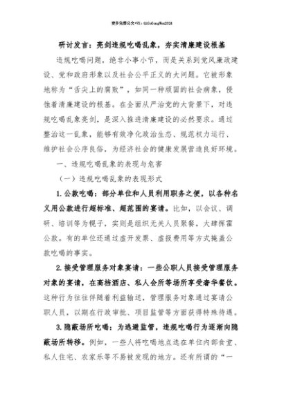 【七哥公文】2025年:【七哥公文】研讨发言:亮剑违规吃喝乱象,夯实清廉建设根基+更多免费公文+VX:QiGeGongWen2024+更多免费公文+VX:QiGeGongWen2024