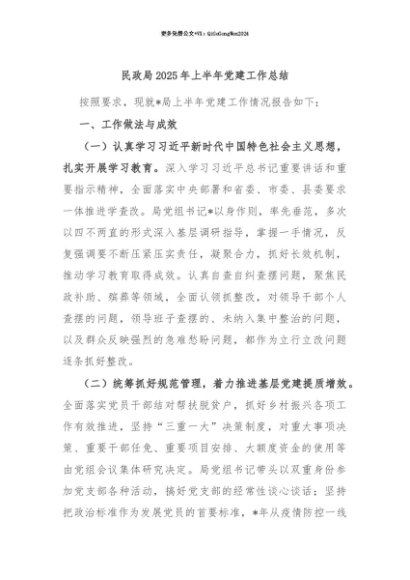 【七哥公文】2025年:【七哥公文】民政局2025年上半年党建工作总结+更多免费公文+VX:QiGeGongWen2024+更多免费公文+VX:QiGeGongWen2024