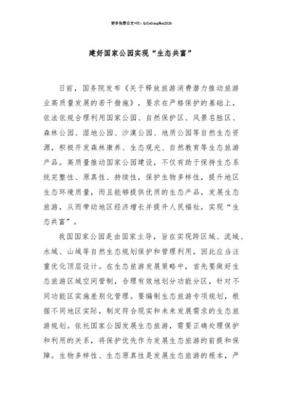 【七哥公文】2025年:【七哥公文】建好国家公园实现“生态共富”+更多免费公文+VX:QiGeGongWen2024+更多免费公文+VX:QiGeGongWen2024