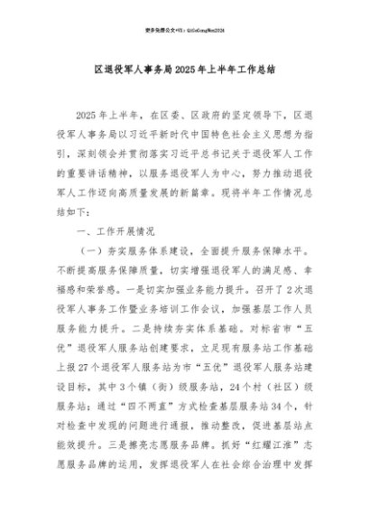【七哥公文】2025年:【七哥公文】区退役军人事务局2025年上半年工作总结+更多免费公文+VX:QiGeGongWen2024+更多免费公文+VX:QiGeGongWen2024