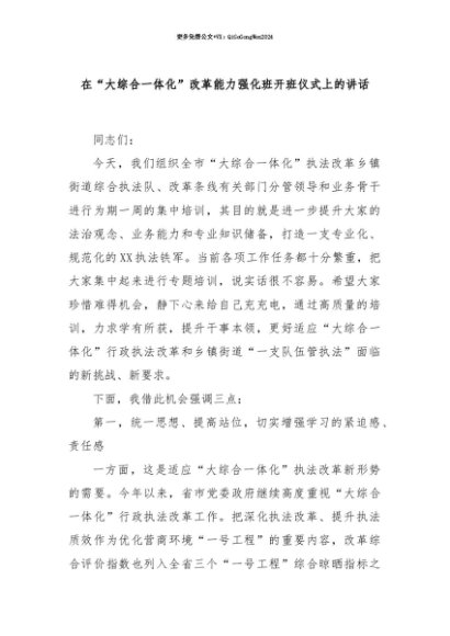 【七哥公文】2025年:【七哥公文】在“大综合一体化”改革能力强化班开班仪式上的讲话+更多免费公文+VX:QiGeGongWen2024+更多免费公文+VX:QiGeGongWen2024
