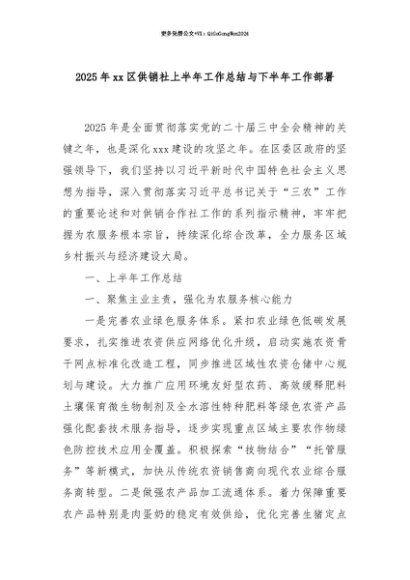 【七哥公文】2025年:【七哥公文】2025年xx区供销社上半年工作总结与下半年工作部署+更多免费公文+VX:QiGeGongWen2024+更多免费公文+VX:QiGeGongWen2024