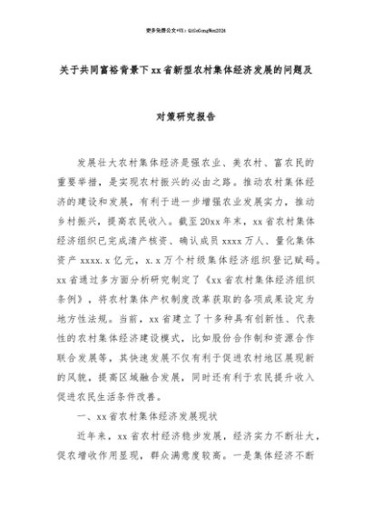 【七哥公文】2025年:【七哥公文】关于共同富裕背景下xx省新型农村集体经济发展的问题及对策研究报告+更多免费公文+VX:QiGeGongWen2024+更多免费公文+VX:QiGeGongWen2024