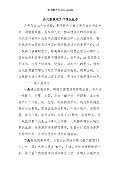 【七哥公文】2025年:【七哥公文】县代表履职工作情况报告+更多免费公文+VX:QiGeGongWen2024+更多免费公文+VX:QiGeGongWen2024