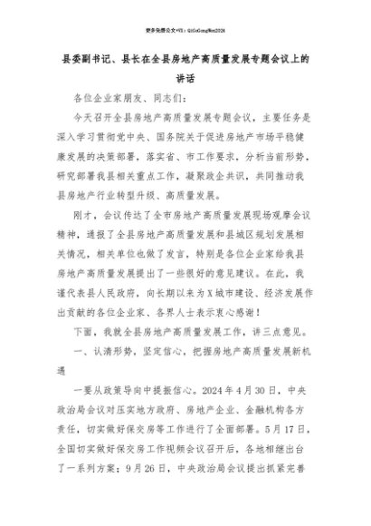 【七哥公文】2025年:【七哥公文】县委副书记、县长在全县房地产高质量发展专题会议上的讲话+更多免费公文+VX:QiGeGongWen2024+更多免费公文+VX:QiGeGongWen2024