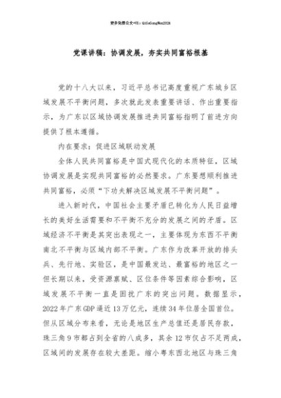 【七哥公文】2025年:【七哥公文】党课讲稿:协调发展,夯实共同富裕根基+更多免费公文+VX:QiGeGongWen2024+更多免费公文+VX:QiGeGongWen2024